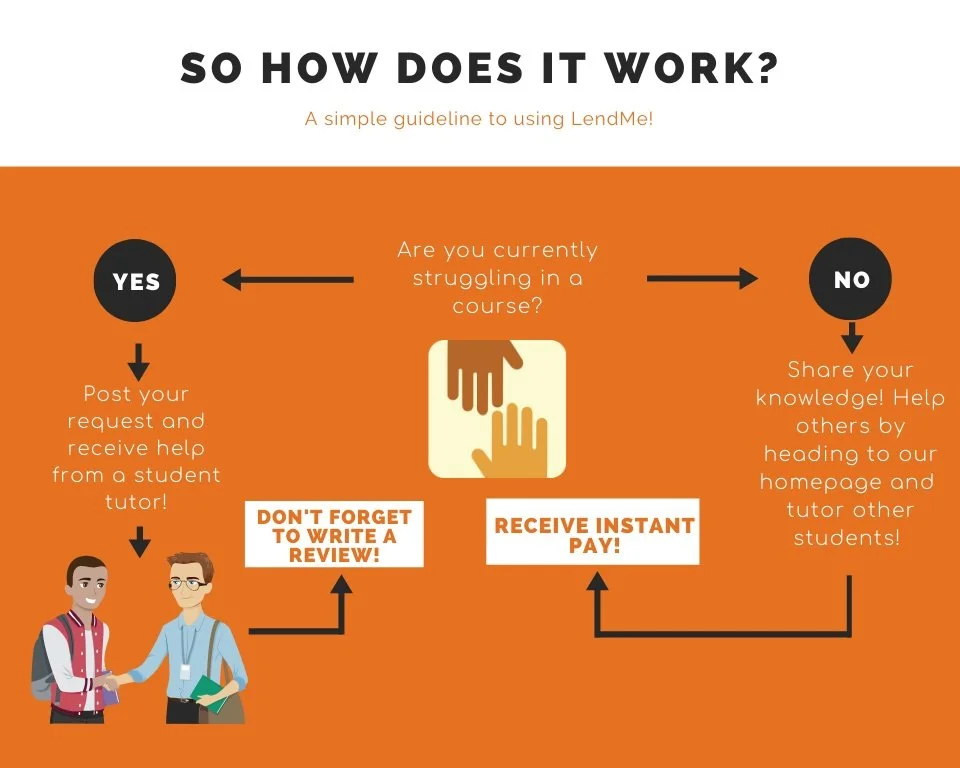 Student safety is our top priority. We understand that peer-to-peer tutoring reveals a student’s instructor & course. LendMe is designed so students can leave their honest reviews anonymously, while also receiving their secured payments instantly!